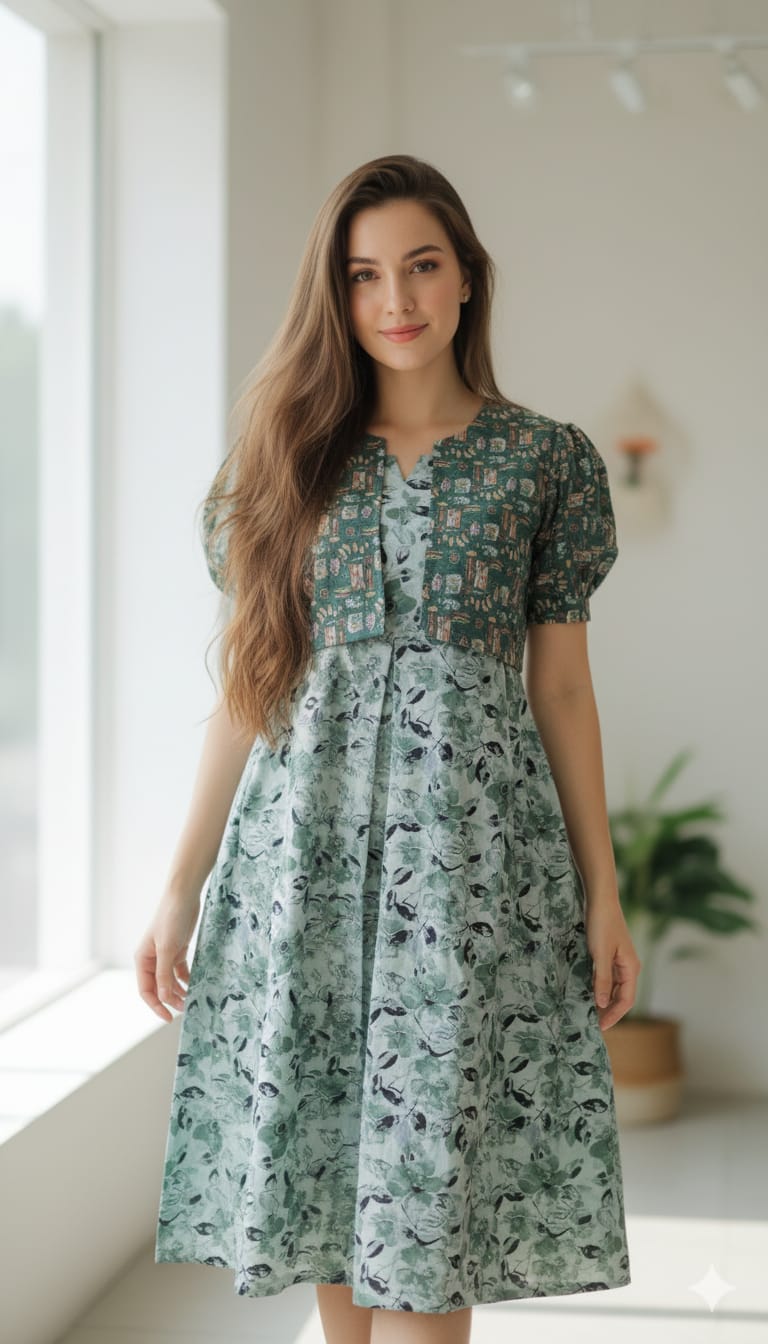 Experience elegance with our Coat Model Frocks crafted from exquisite chikankari fabric, renowned for its intricate hand embroidery. Designed in a Jaipur sleeveless style, this frock combines traditional artistry with modern comfort, making it perfect for both casual and festive occasions. The breathable fabric ensures all-day ease, while the detailed chikankari work adds a refined, sophisticated touch to your wardrobe. Ideal for those seeking expert craftsmanship and timeless style in one garment.