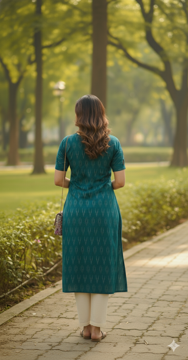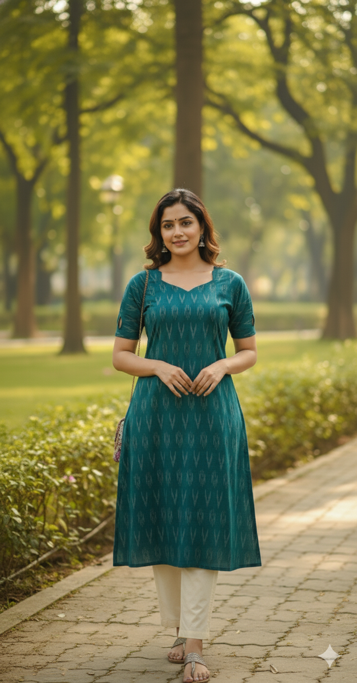 Experience refined comfort with this premium cotton blend Ikkat top and bottom set. The top showcases traditional Ikkat patterns, while the straight-cut pants provide a contemporary silhouette and ease of movement. Designed for durability and style, this ensemble combines cultural elegance with everyday practicality.