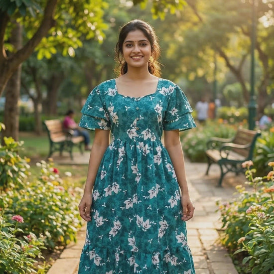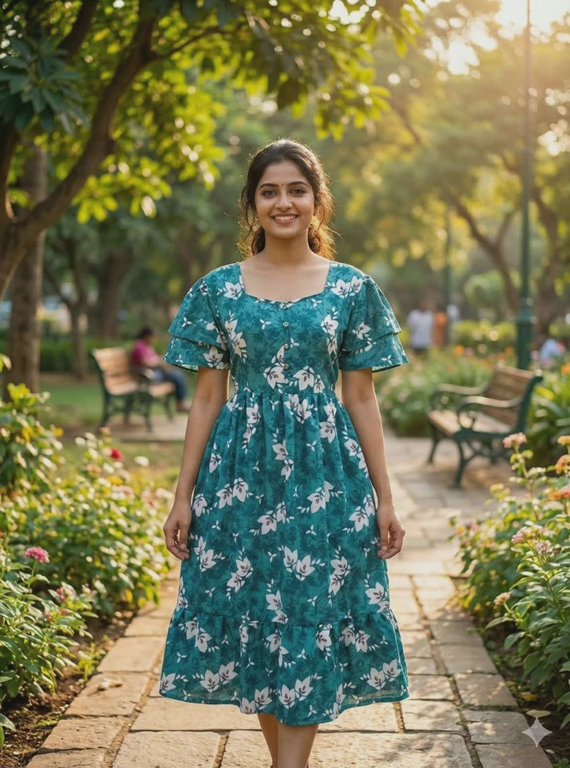 Elevate your child's wardrobe with this charming step frock featuring delicate floral patterns and graceful butterfly sleeves. Crafted from a premium soft cotton-rayon blend, this fabric offers exceptional breathability and comfort for all-day wear. The thoughtfully designed 49-inch length provides an ideal fit for growing children, while the distinctive butterfly sleeves add a touch of elegance and freedom of movement. Perfect for casual outings, celebrations, or everyday occasions, this frock combines style with practical comfort that parents and children alike will appreciate.